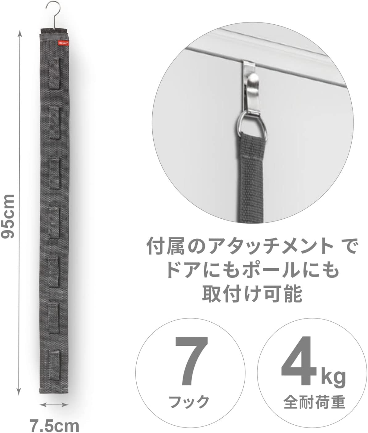 Colgador para 7 bolsos velcro 8*95cm Rayen